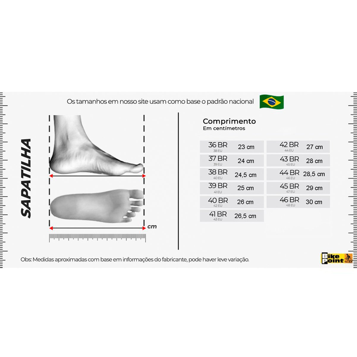 Peso (Aprox.): 338g (por pé - tamanho 40Br)