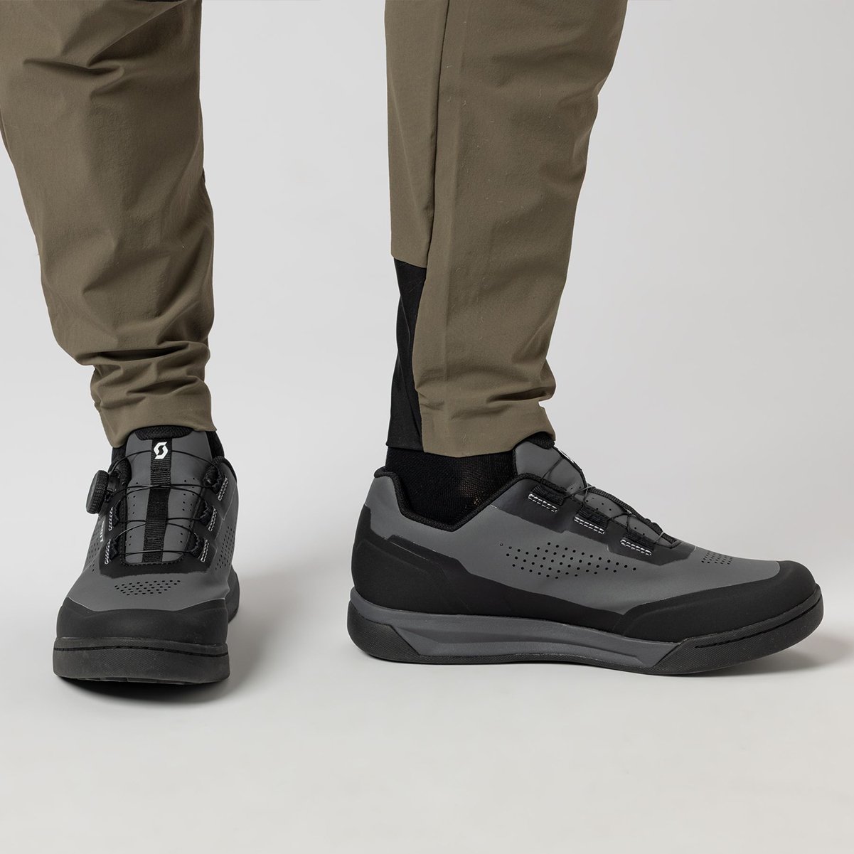 O grande diferencial hj está na união do sistema de fechamento BOA® L6 com um solado focado em tração. O sistema BOA permite um ajuste rápido e uniforme, garantindo que a sapatilha envolva seu pé com precisão milimétrica. O solado em borracha Sticki oferece aderência superior em superfícies escorregadias, enquanto a palmilha ErgoLogic proporciona o suporte necessário para evitar a fadiga em pedais de longa duração. É a tecnologia têxtil da Scott aplicada para gerar uma experiência de uso suave, seja clipado na bike ou explorando novos caminhos a pé.