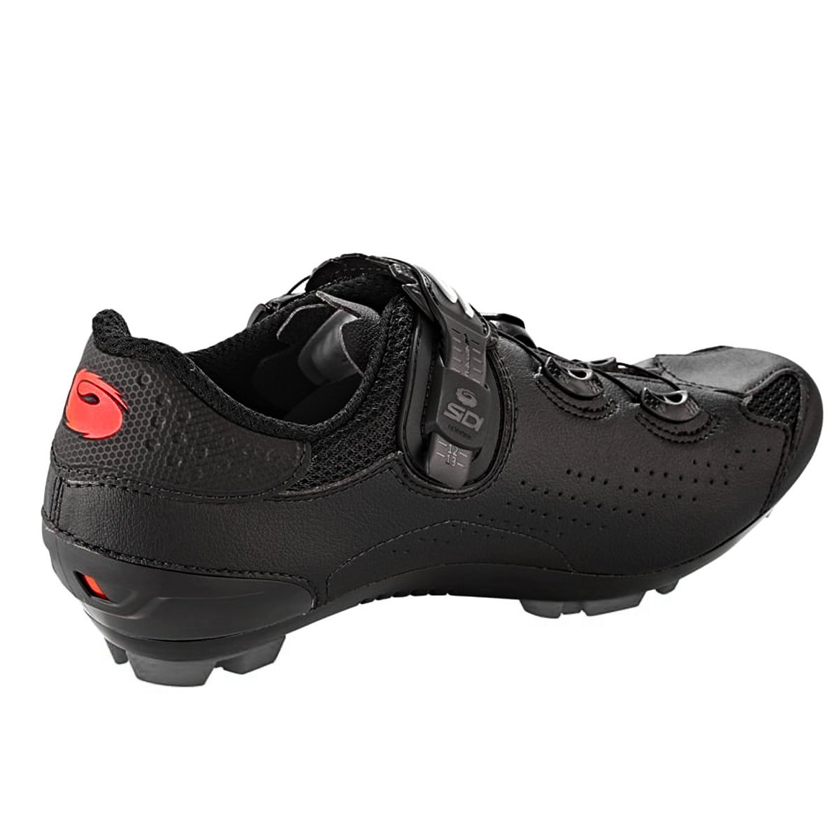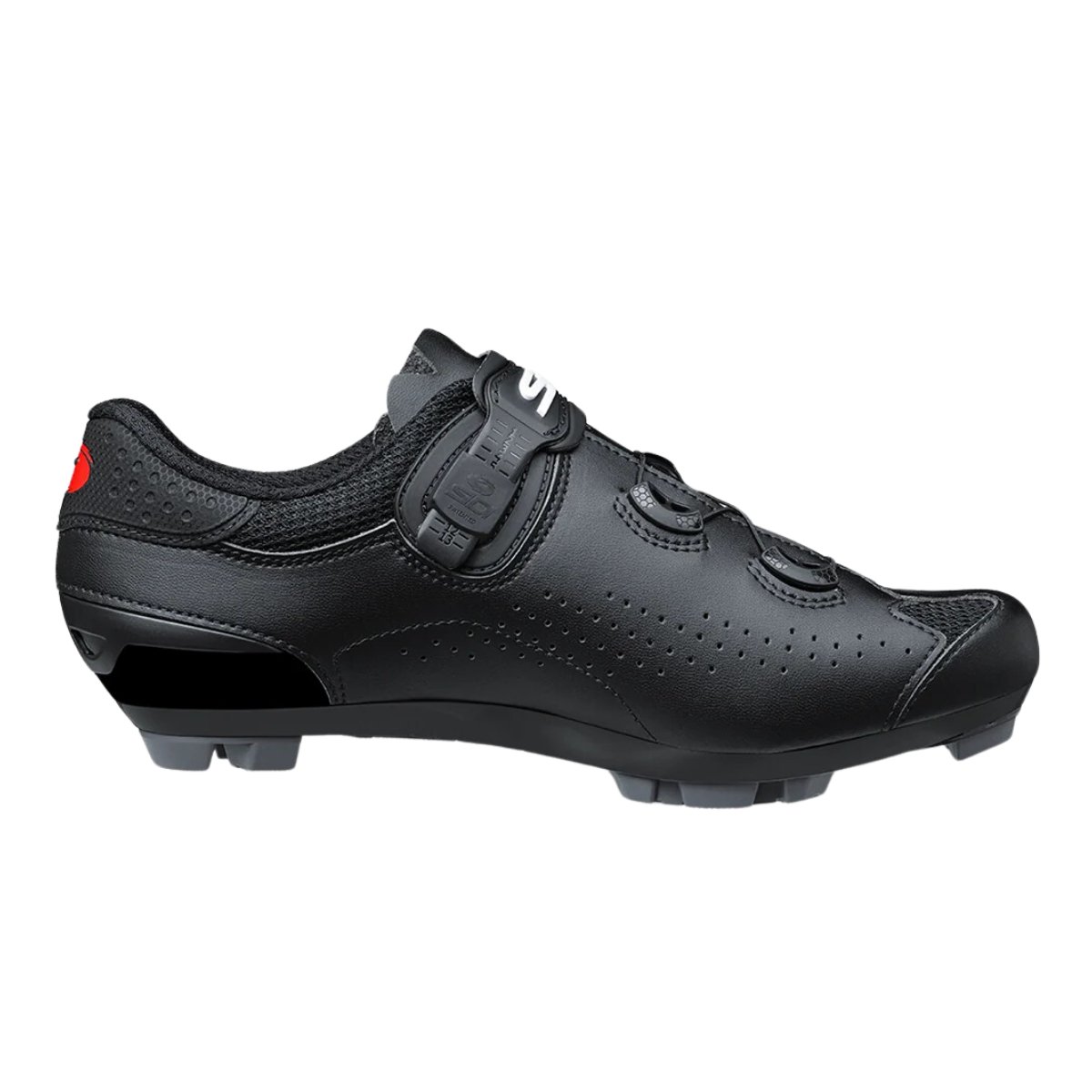 O Techno-3 System da Sidi ajusta-se ao longo de todo o comprimento da sapatilha, adaptando a parte superior ao formato do pé para um ajuste personalizado. Este sistema oferece um ajuste de fácil manuseio durante a condução e é feito por meio de cabo de nylon e botão giratório na parte superior da sapatilha, distribuindo a pressão de forma uniforme por todo o pé, permitindo ajustes milimétricos mesmo durante os pedais.