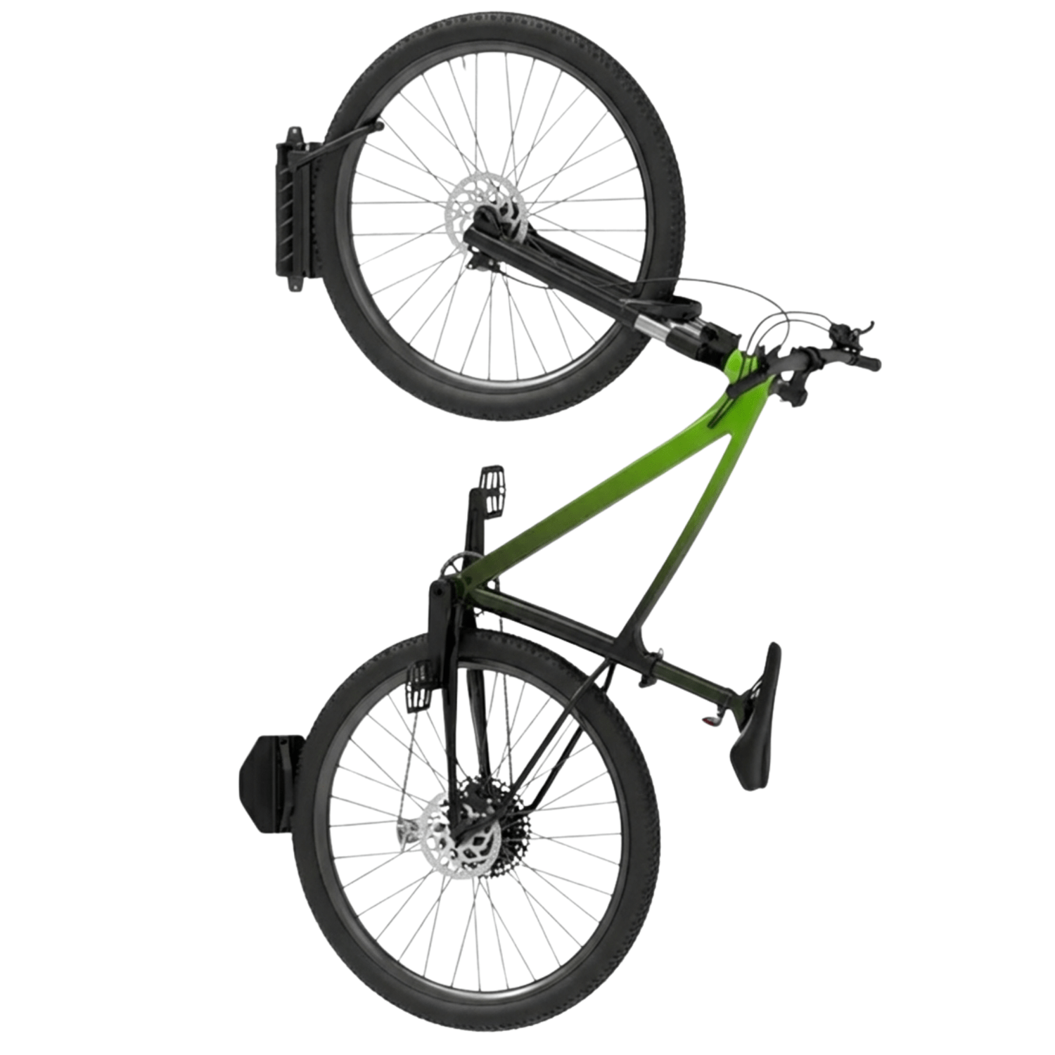 Com sistema articulado, o suporte permite girar a bicicleta lateralmente após fixada na parede, reduzindo o espaço ocupado. Seu gancho possui largura adequada para diferentes tipos de pneus, oferecendo encaixe seguro e facilitando o uso diário, seja para guardar ou retirar a bike.