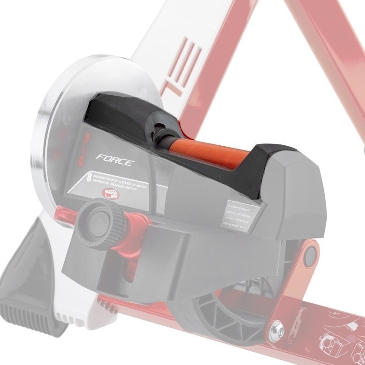 O Suporte de Roda Elastogel Elite é um composto de poliuretano exclusivo desenvolvido e testado pela Elite, utilizado no rolo vermelho onde a roda se apoia em dispositivos de treino como o Elite Novo Force e o Elite Qubo Power Mag Smart. O Elastogel melhora a aderência do pneu ao rolo, proporcionando uma experiência de treino mais estável e segura. Esta característica é particularmente importante para ciclistas que procuram replicar as condições de estrada de forma mais realista durante o treino indoor.